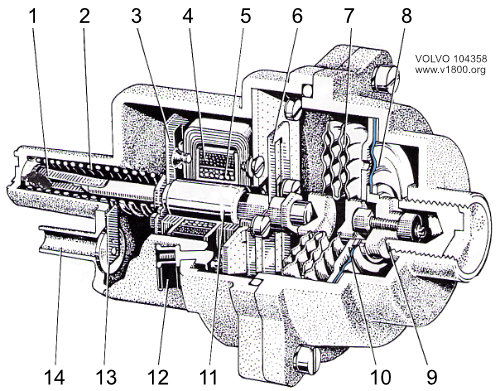 Gleichzeitig weiten sich die Membranendosen (7), beeinflusst vom Unterdruck im Druckfühler, und drücken den Anker noch weiter nach links. Abhängig vom Druck im Saugrohr (Lastzustand des Motors) stellt sich der Anker bei Fahrbetrieb in verschiedene Lagen.