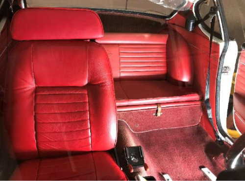 Am 20. Februar war es dann endlich soweit und wir konnten den P1800 S endlich mit dem Fahrzeuganhänger abholen. Nach der Anmeldung auf ein Wechselkennzeichen (gemeinsam mit dem MGB) wurden die nächsten Tage von und bei einem Oldtimerprofi genutzt, um alle Öle zu wechseln, Servicearbeiten durchzuführen, sogenannte Stromräuber zu eliminieren und Sportluftfilter und das Retro-Radio zu verbauen. Heizungs- und Lüftungshebeln waren zumeist fest und die Seilzüge mussten auch erst wieder gängig gemacht werden. Der Wagenheber und die Reserveradfelge (Reifen war aus 1972) wurden zum Sandstrahlen gebracht. Der Sattler kümmerte sich bei den ausgebauten Sitzlehnen um die Nachrüstung der Nackenstützen.